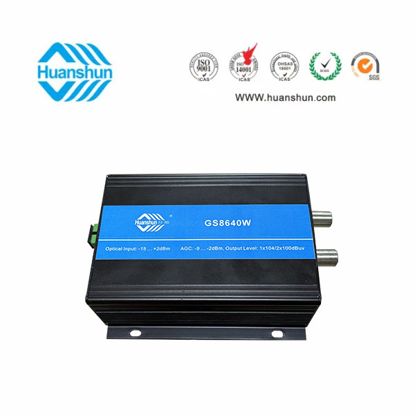 | 樓棟光接收機(jī) | GS8640W | 47~860MHz,-7~+2dBm/RF 1×106或2×102dBuv,電調(diào)輸出電平和斜率均衡,外置 90~255V-12V 1A 電源適配器 |