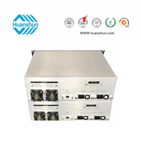 大功率光纖放大器EYDFA | YGF1564-16C | 19 " 2U/3U標(biāo)準(zhǔn)機箱,-5 ~ +10 d Bm輸入,64路標(biāo)稱規(guī)格(16、17、18、19、20、21dBm)放大輸出,并支持下調(diào)-2dB,安全連接模式,NF ≤ 5dB(0dBm時);內(nèi)置FWDM合波器,插播損耗 ≤ 1dB;雙模塊熱插撥電源,AC90 ~ 255V或DC-48V供電,RJ45標(biāo)準(zhǔn)網(wǎng)管(支持SNMP、WEB) |
