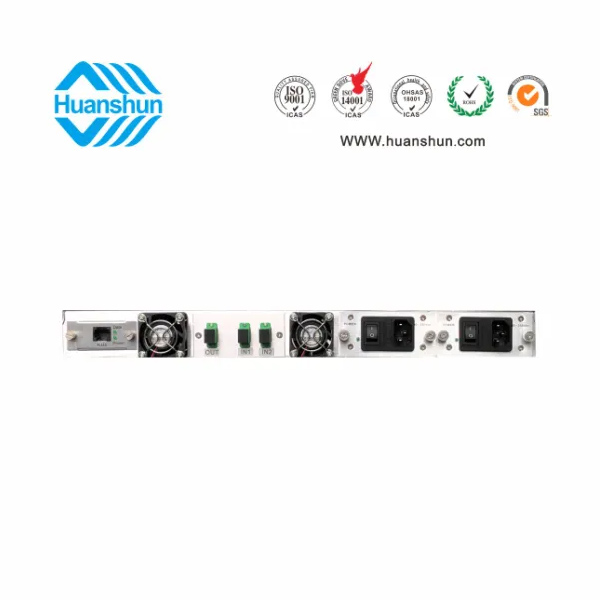 EDFA | YGF1518T-C | 主波-5 ~ +10 d Bm輸入,插播按需求功率配置,合波放大標(biāo)稱規(guī)格(18、19、20、21)輸出,并支持上調(diào)+0.5dB,下調(diào)-3dB,NF ≤ 5dB(0dBm時);1U標(biāo)準(zhǔn)機(jī)箱,雙模塊熱插撥電源,AC90 ~ 255V或DC-48V供電,RJ45標(biāo)準(zhǔn)網(wǎng)管(支持SNMP、WEB) |