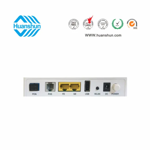 GPON ONU WIFI | HSO2002GVUW | GPON 1GE WIFI ONU, PON端口接入,帶光纖存儲設(shè)置,1VOIP+1USB端口,2*2內(nèi)置天線2.4GHz 300Mbps;外置90~255V-12V 1A電源適配器 |