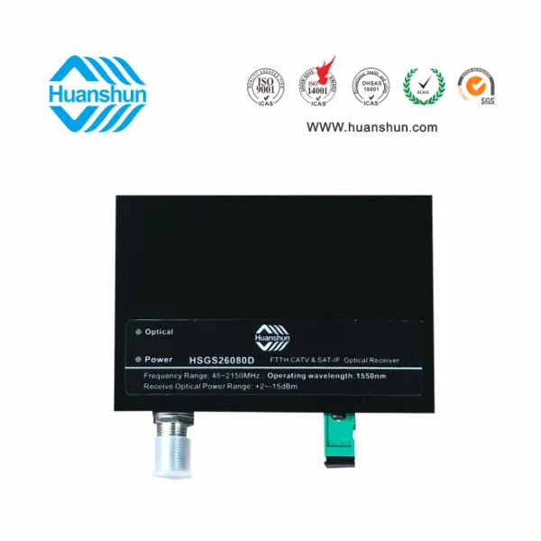 濾波型CATV&SAT-IF光接收機(jī) | HSGS26080D | RF工作帶寬45~2150MHz,光工作波長1540~1565nm,光接收功率-8~0dBm/RF CATV80dBuv,SAT-IF65-75dBuv,RF接口F型公制或英制(訂貨時說明),光輸入接口SC/APC |