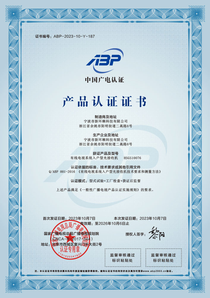 有線電視系統(tǒng)調(diào)幅光接收機認證